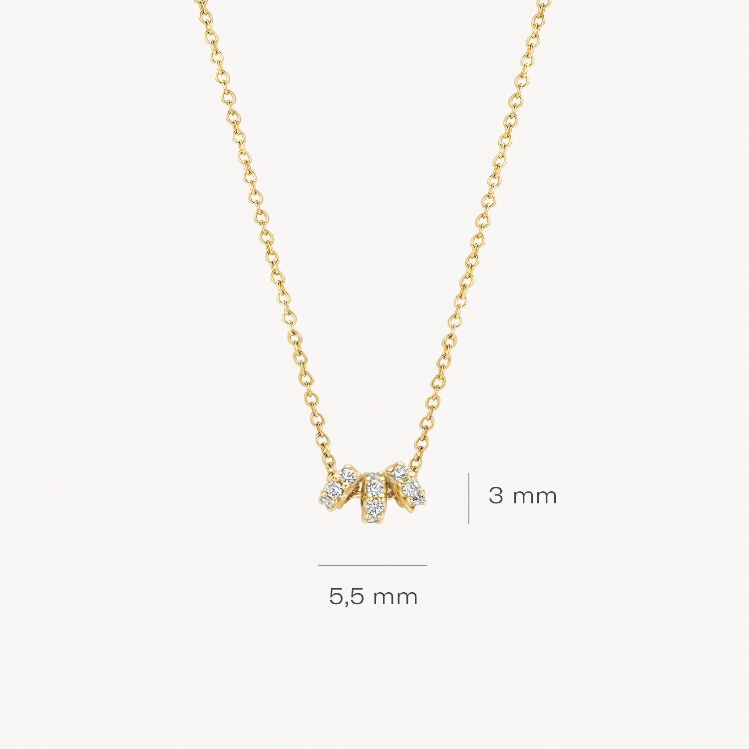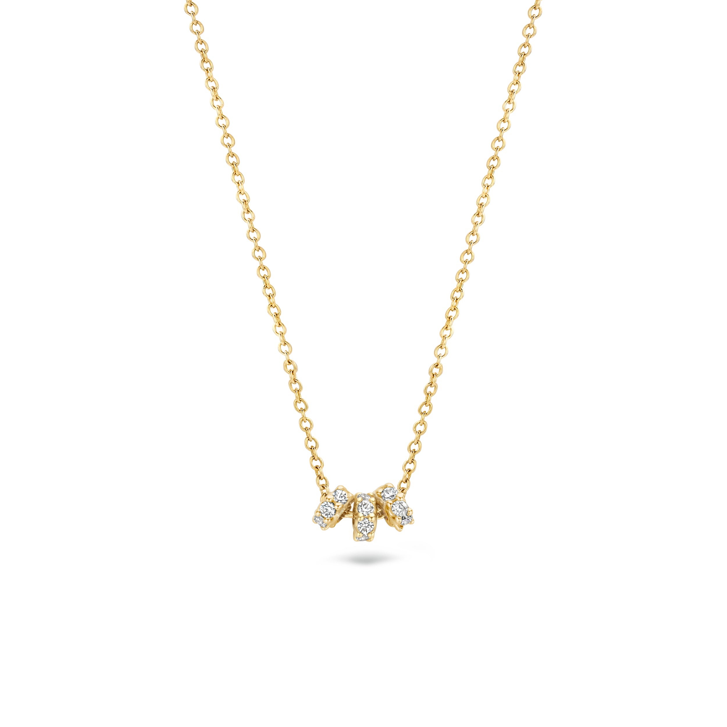 Three zirconia-set rings in 14k yellow gold adorn this stylish yet playful necklace. Wear this beautiful necklace alone or combine it with other jewelry from the Blush collection.