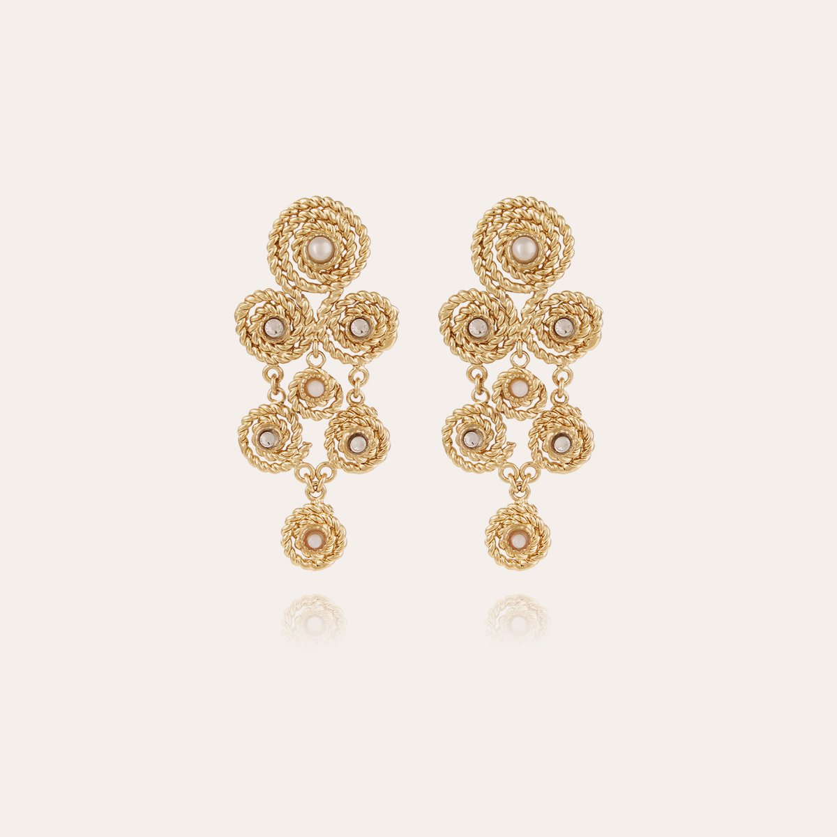 These Gas Bijoux earrings are a beautiful addition to any jewelry collection. These gold-tone earrings feature multiple circles, set with sparkling stones and pearls. Perfect for special occasions, they're guaranteed to be an eye-catcher. They're also easy to combine with different outfits, so you can wear them again and again. Create a festive look with these stunning Gas Bijoux earrings!