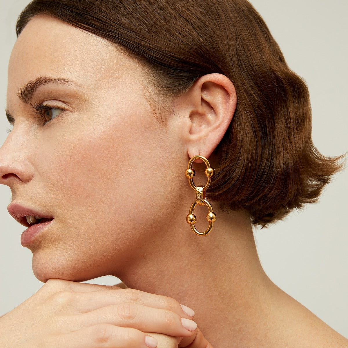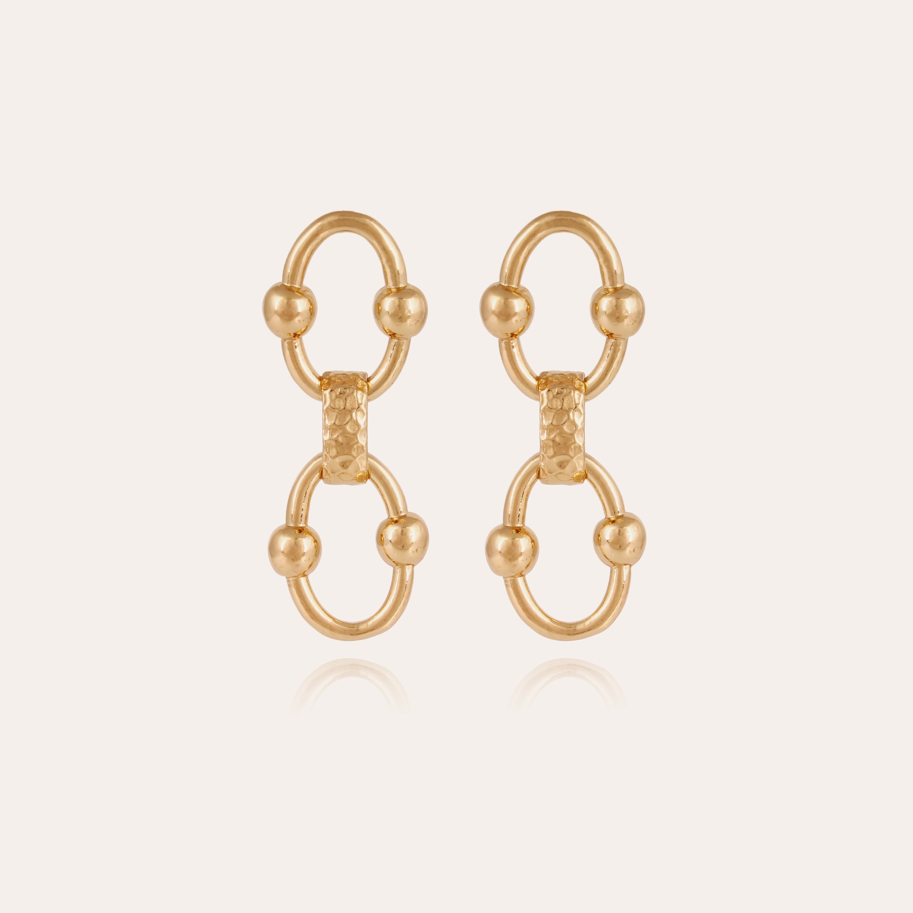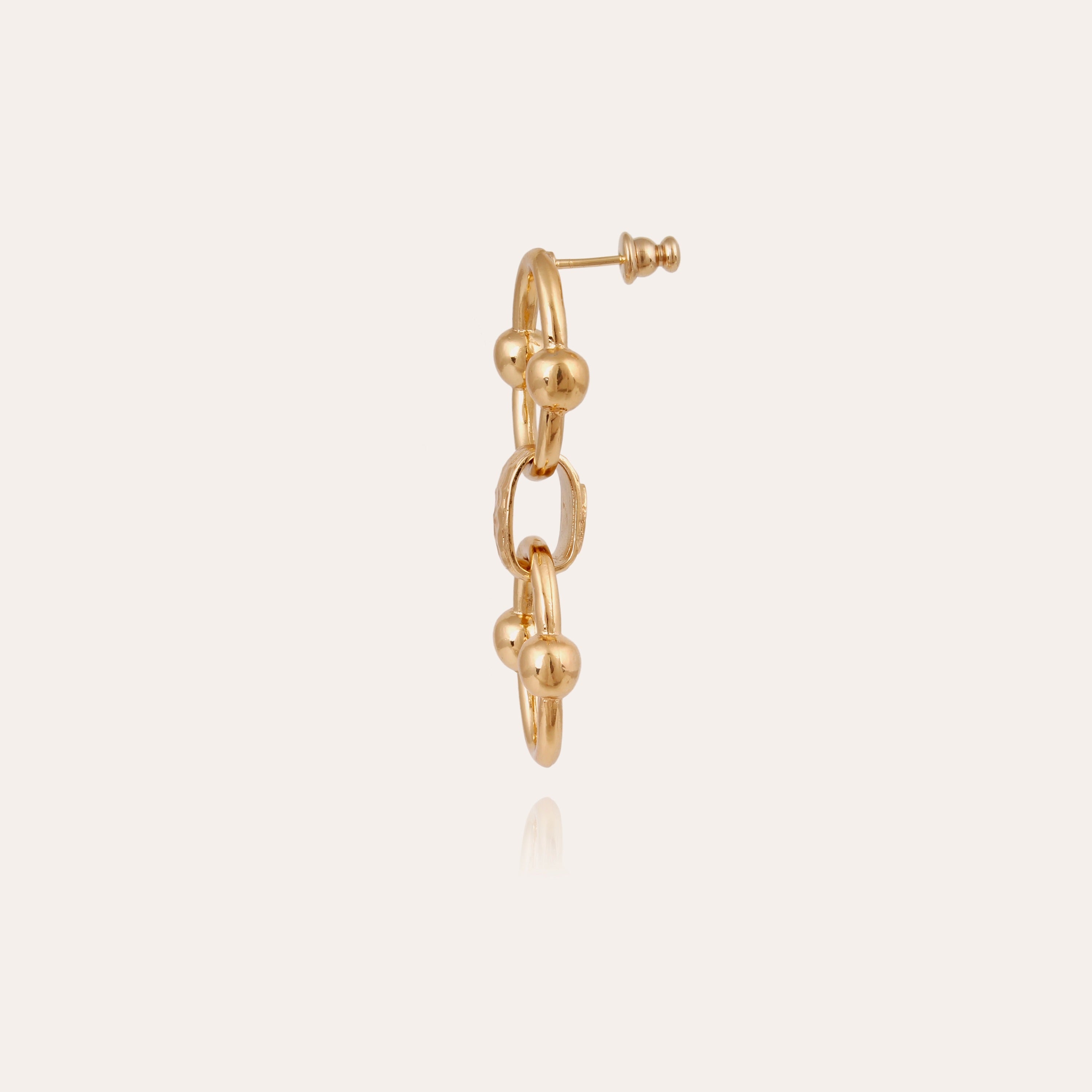 These Gas Bijoux Rivage earrings are a beautiful addition to any jewelry collection. The gold-tone earrings feature two striking, movable links, creating a playful effect. They're perfect for special occasions but also perfect for everyday wear. They're also easy to combine with different outfits, so you can wear them again and again. Create a festive look with these stunning Gas Bijoux earrings!