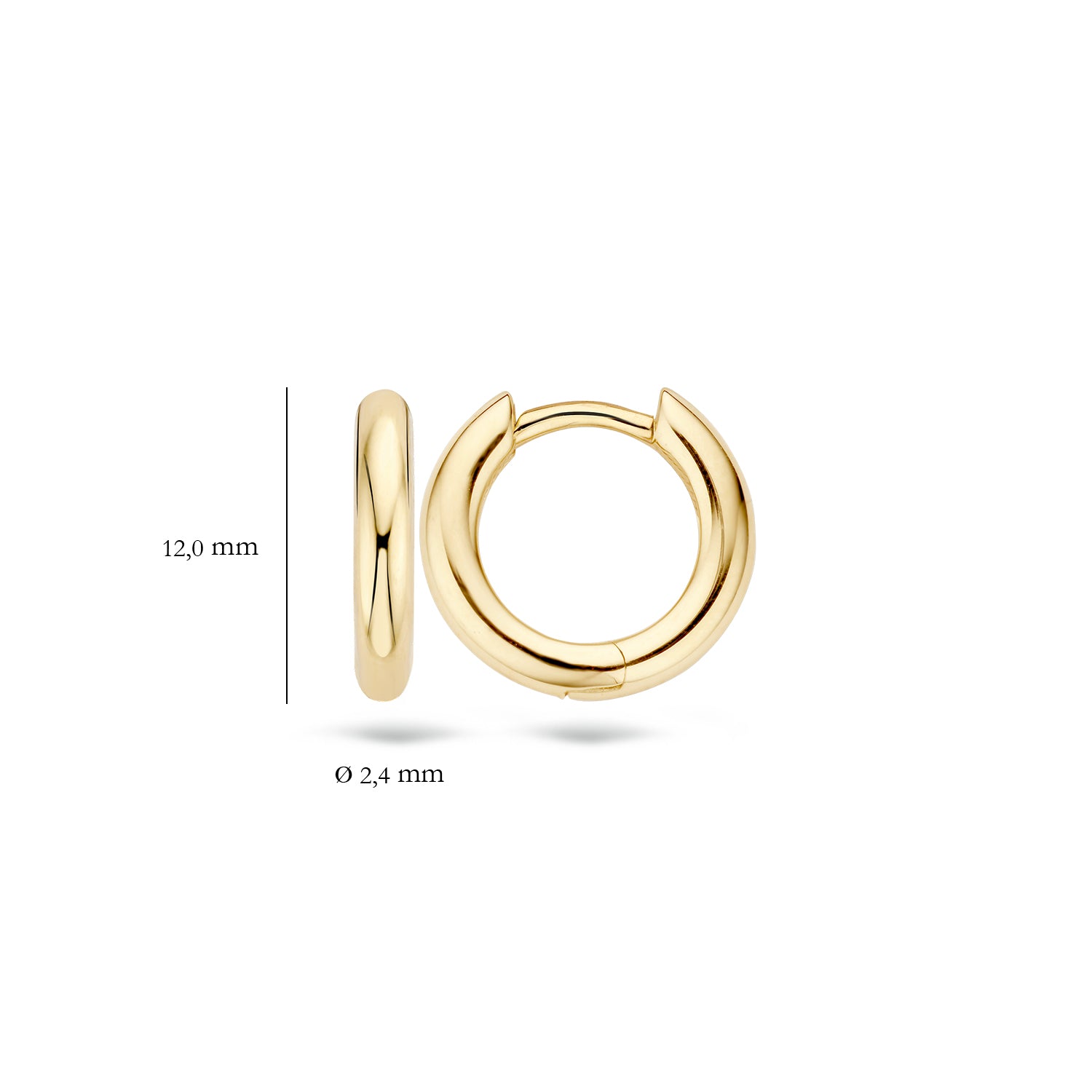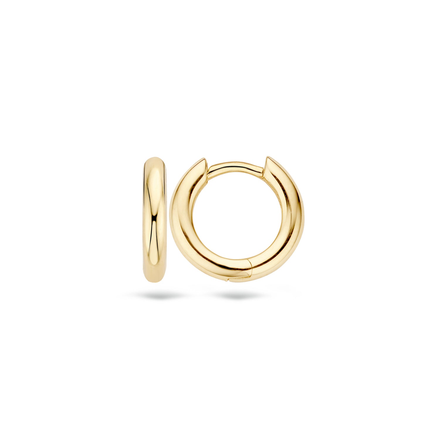 Deze eenvoudige, ronde oorringen hebben een dikte van 2,4 mm en een doorsnede van 12 mm. Ze zijn gemaakt van 14k gepolijst geelgoud. Prachtig op zichzelf, maar ook goed te combineren met andere sieraden uit de Blush collectie.