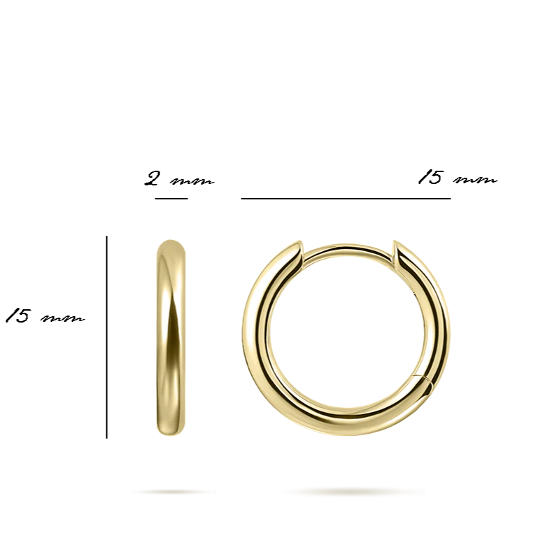 Een tijdloze musthave: deze verfijnde basic hoops van 15mm. Verkrijgbaar in het goud en zilver, waardoor je kan kiezen wat bij jouw stijl past. Perfect om dagelijks te dragen of te combineren met andere oorbellen om je earparty compleet te maken.