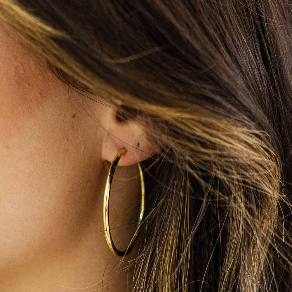 Een tijdloze musthave: deze verfijnde basic hoops van 40mm. Verkrijgbaar in het goud en zilver, waardoor je kan kiezen wat bij jouw stijl past. Perfect om dagelijks te dragen of te combineren met andere oorbellen om je earparty compleet te maken.