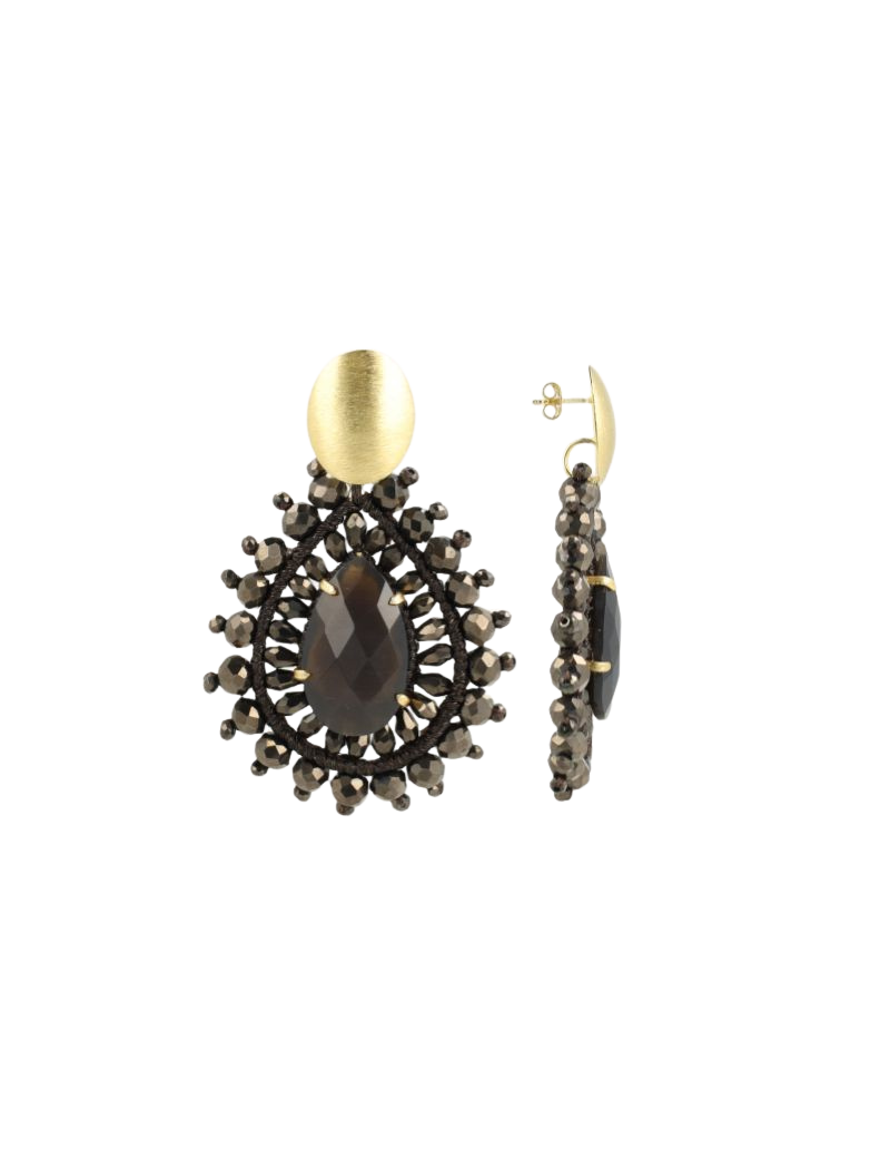 Lott Oorbellen Drop Crystal Double Quartz - Metallic Brown