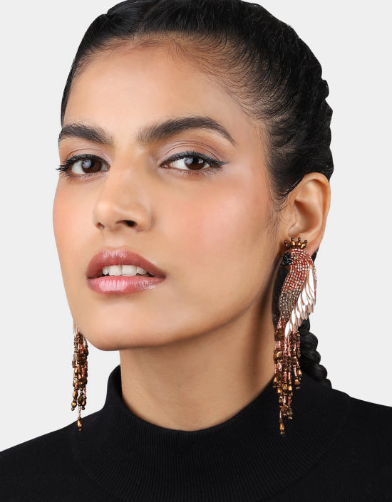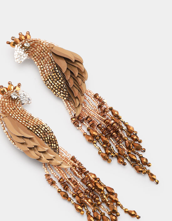 De Olivia Dar Peacock oorbellen zijn prachtige statement oorbellen die zeker de aandacht zullen trekken. Deze unieke oorbellen zijn met de hand geborduurd en in de vorm van een pauw, met een combinatie van gouden en bruine kralen en pailletten. De opvallende kleuren en het gedetailleerde ontwerp maken deze oorbellen een echte eyecatcher. Of je nu een speciale gelegenheid hebt of gewoon wat extra flair aan je outfit wilt toevoegen, deze Olivia Dar oorbellen zijn de perfecte keuze.