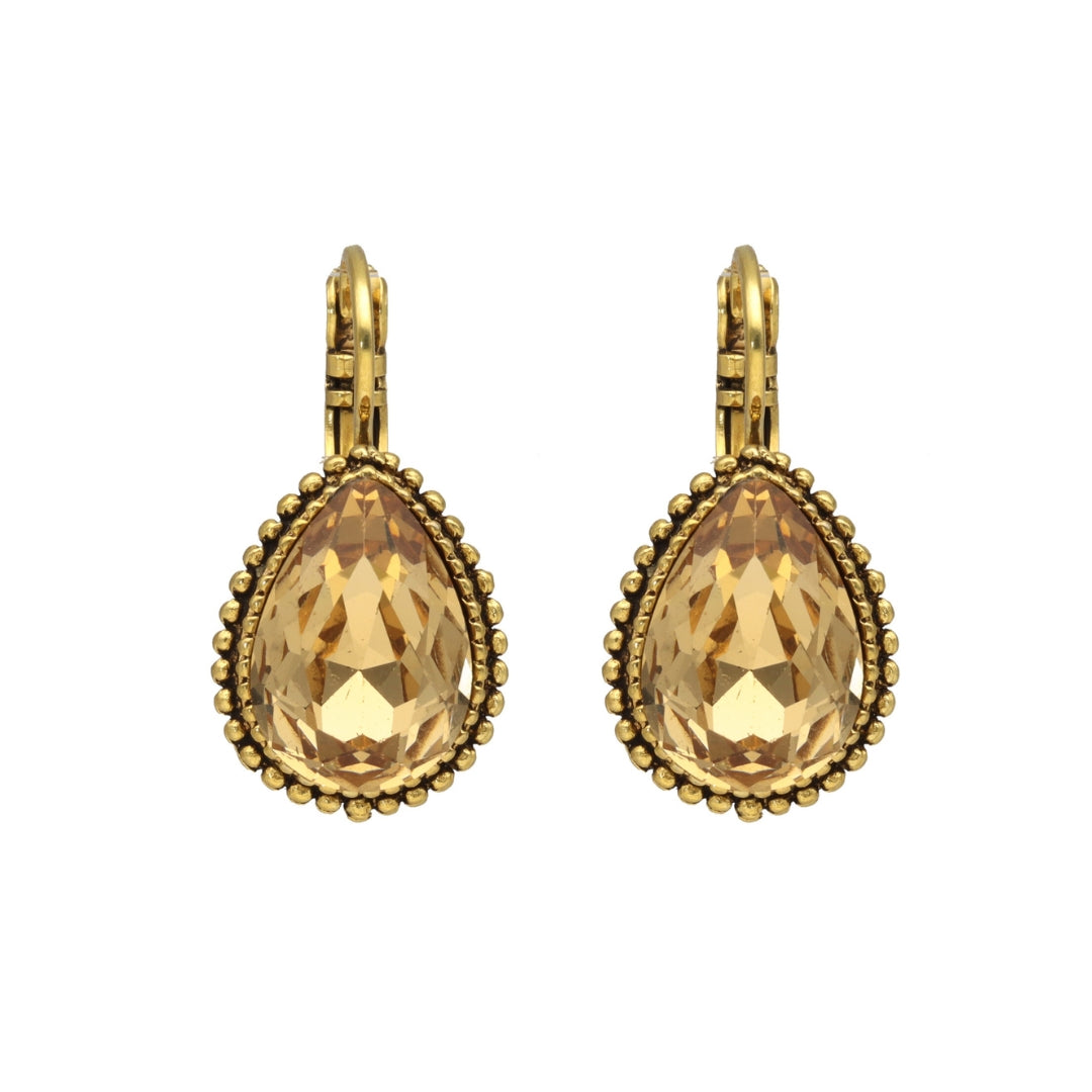 Deze Camps & Camps oorbellen hebben een prachtig goudbruin Swarovski kristal in een bewerkte gouden zetting. Ze zijn perfect voor ieder moment, of je nu een casual look wilt verfijnen of je outfit wilt opleuken voor een speciale gelegenheid, deze oorbellen zijn de perfecte accessoire! De oorbellen zijn 18 karaats goud verguld, waardoor ze van een mooie kwaliteit zijn.