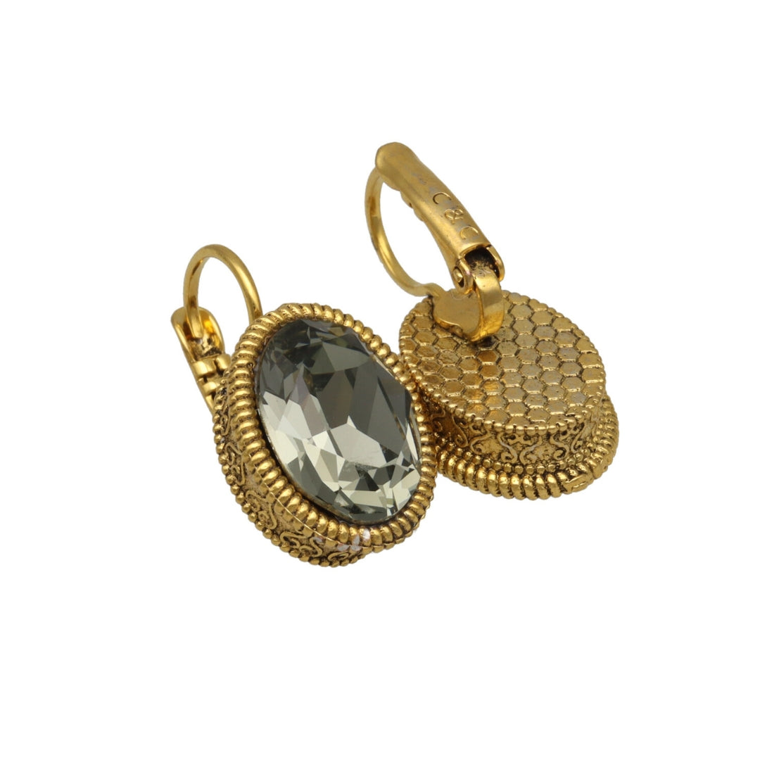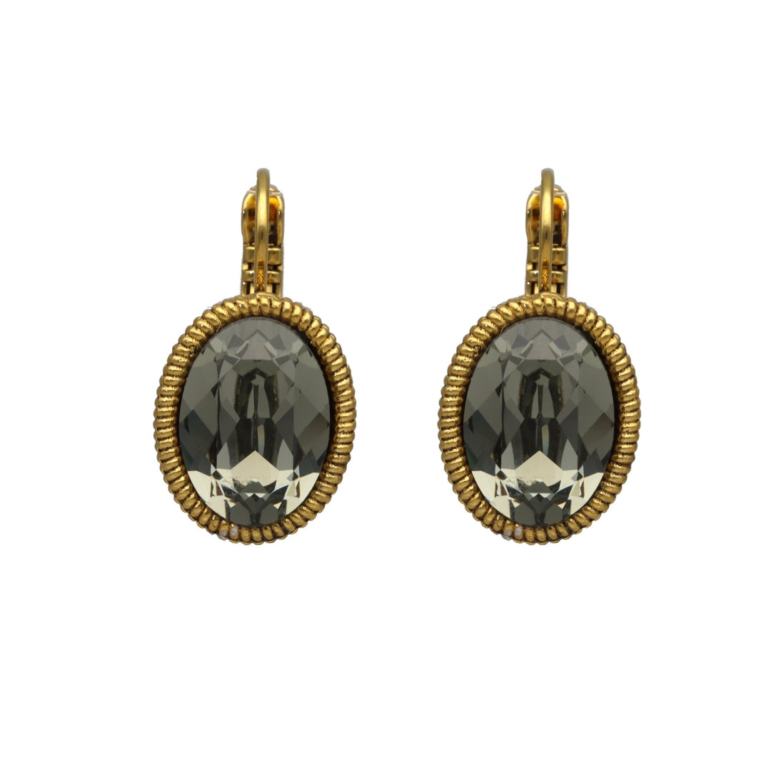 Deze Camps & Camps oorbellen hebben een prachtig smoky Swarovski kristal in een bewerkte gouden zetting. Ze zijn perfect voor ieder moment, of je nu een casual look wilt verfijnen of je outfit wilt opleuken voor een speciale gelegenheid, deze oorbellen zijn de perfecte accessoire! De oorbellen zijn 18 karaats goud verguld, waardoor ze van een mooie kwaliteit zijn.