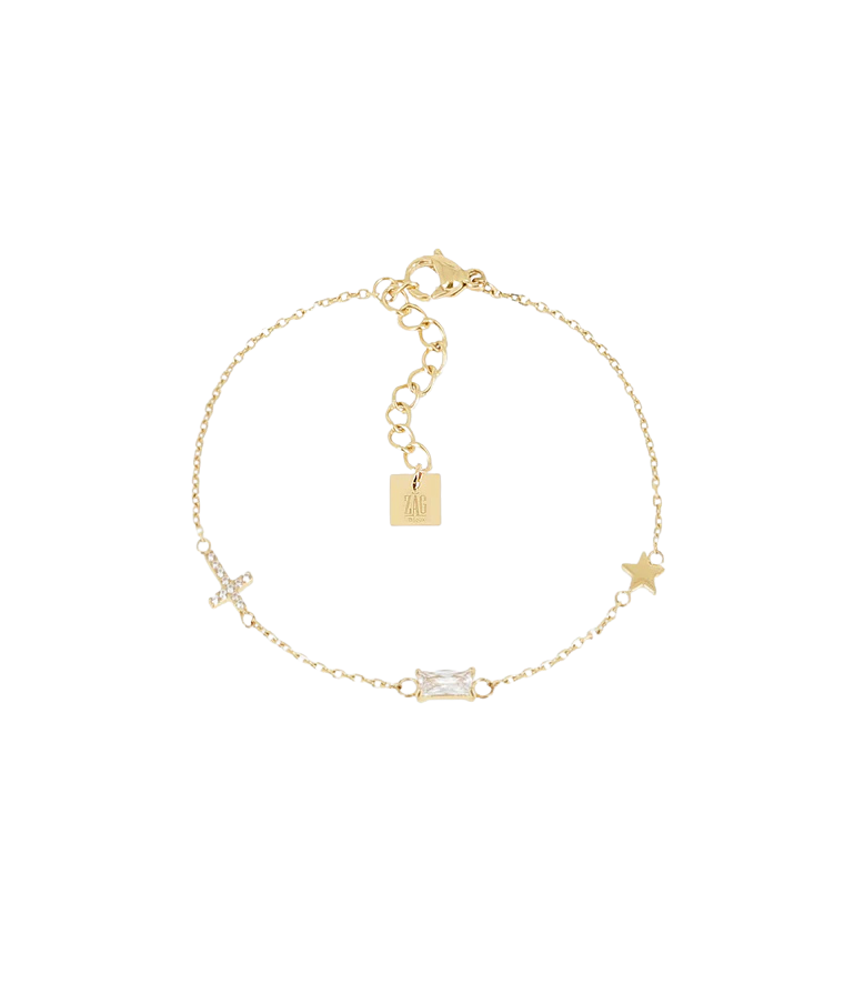 De ZAG Bijoux armband Sansor is een prachtige toevoeging aan je sieradencollectie. Deze fijne schakelarmband is voorzien van een glimmend element in het midden, een kruisje en een sterretje, waardoor het een chique en speelse uitstraling heeft. De armband is gemaakt van hoogwaardig stainless steel en ingelegd met zirkonia steentjes. Deze armband is een goede basic die perfect te combineren is met andere armbandjes, waardoor je eindeloos kunt mixen en matchen voor een unieke look.